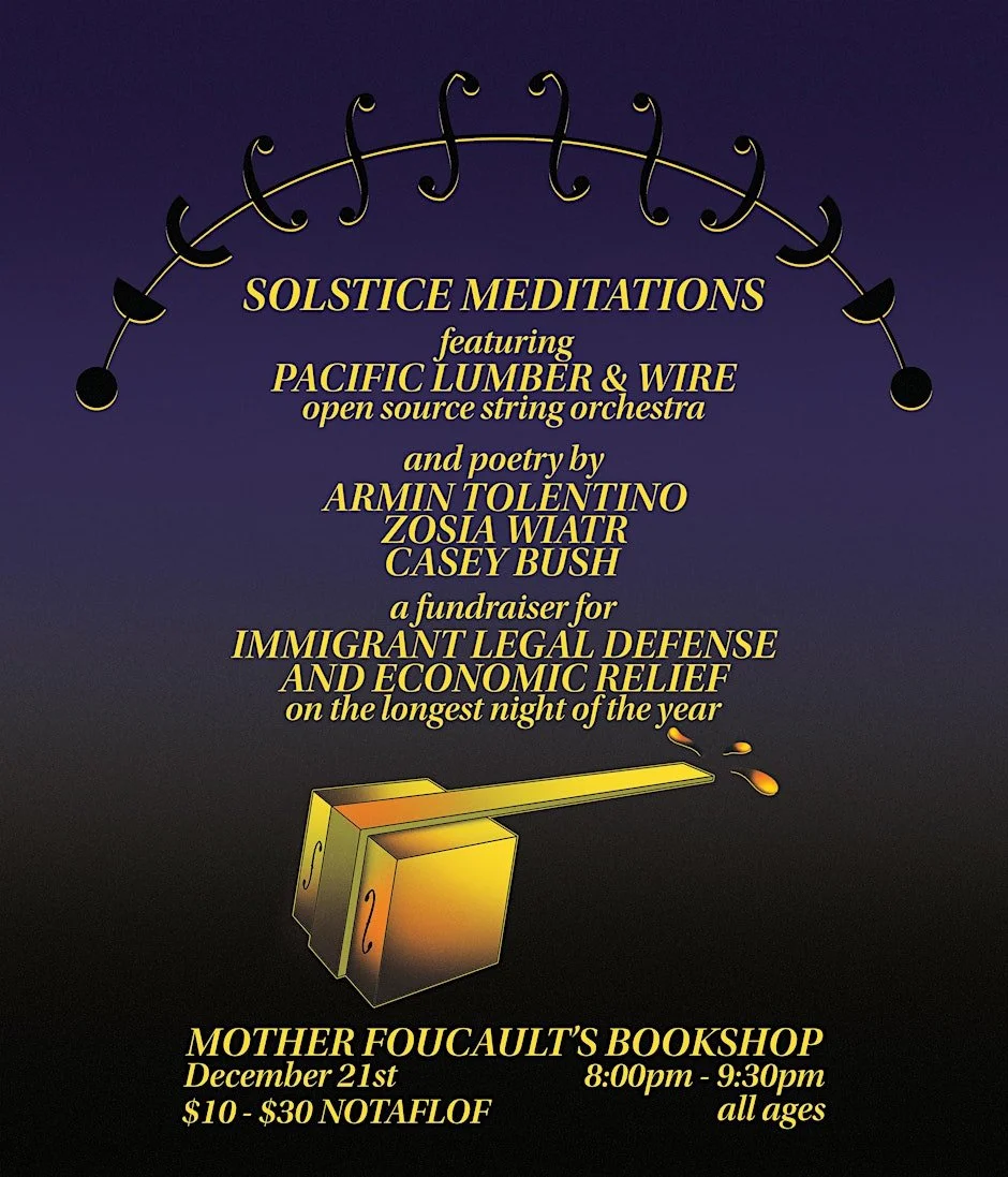Join us for an evening of meditative strings and poetry for Immigrant Legal Defense Fundraiser.