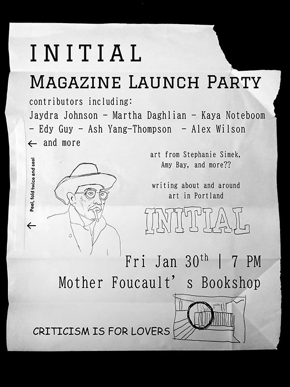 INITIAL MAGAZINE LAUNCH PARTY Friday, January 30, 2026 7:00 PM 10:00 PM Mother Foucault's Bookshop 715 Southeast Grand Avenue Portland, OR, 97214 United States (map) Google Calendar ICS